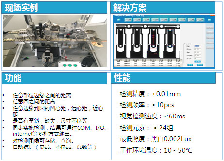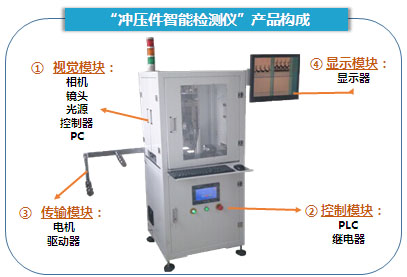 沖壓件檢測系統(tǒng)主要是沖壓件的幾何尺寸、端子缺少、漏沖、斷裂等異常狀況進(jìn)行檢測,可提示報(bào)警或者控制機(jī)器停機(jī)。對不符合要求的沖壓件檢測后可輸出控制信號,剔除不合格品。