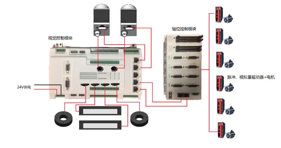 | 產(chǎn)品主要功能,運(yùn)動(dòng)控制模塊,相機(jī)供電觸發(fā)控制模塊,光源控制模塊,圖像處理系統(tǒng),輸入輸出IO信號(hào)模塊。 |